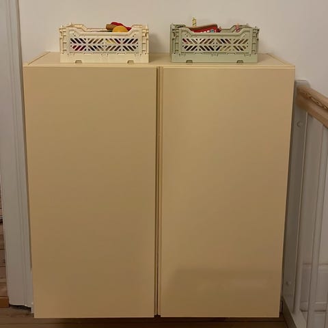 To flotte Ivar skabe malet flot lysegrå. Fremstår som nye og med tre hylder indeni. Tilføjet hjul under så de nemt kan rykkes rundt og ikke skal hænges op på væggen. Foretrække at sælge samlet til 1000 kr. Afhentes på Nørrebro.