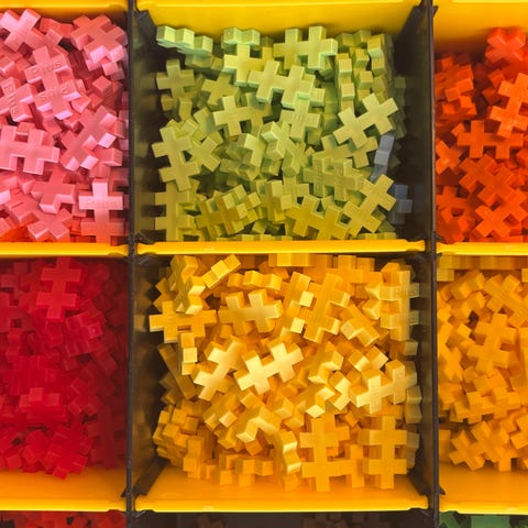 Forskellige plus-plus, nogle er selvlysende.
