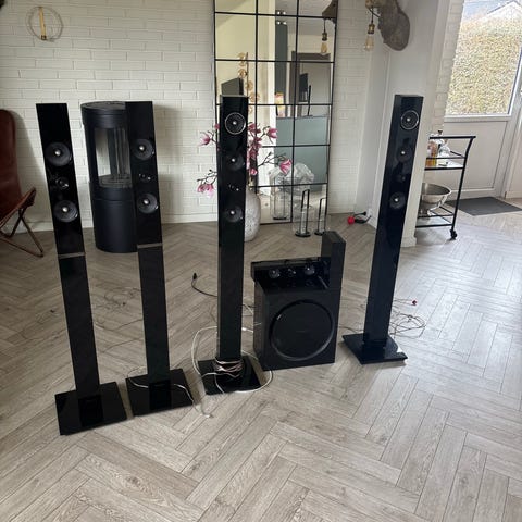 Samsung højttalersæt til hjemmebiograf i sort. Sættet består af slanke gulvhøjttalere og en subwoofer i matchende design. Velegnet som del af et surround- eller hjemmebiografsystem til tv og filmlyd i stuen. Der medfølger desuden stand til multimedie afspiller, samt center højtaler. Kun afhentning