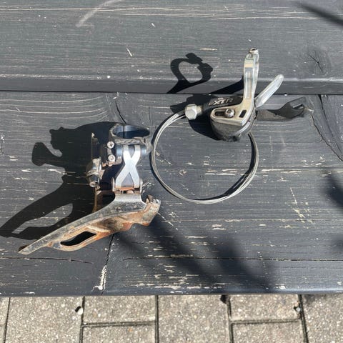 XTR forskifter, Shimano XTR, FD-M970-E, Front Derailleur, 3x9 Speed, E-Type, Dual Pull.