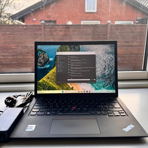 Jeg sælger min Thinkpad X13 G2. Det virker fint, og det er stadig hurtigt. Batteriet er stadig godt.