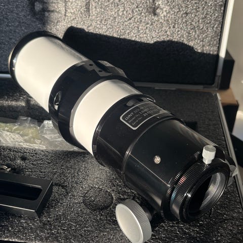 Lunt Solar Systems LS60T Hα solteleskop med 60 mm åbning, udført i sort og hvid finish. Teleskopet er konstrueret til observation af Solen i H-alfa-lyset (Hα) og giver mulighed for at se detaljer som protuberanser og overfladestrukturer på Solen. Sættet omfatter et Lunt B600 diagonalspejl/blokfilter samt et Lunt-okular, som monteres i fokuseren. Leveres i en hård transportkuffert med udskåret skumindlæg til sikker opbevaring og transport af teleskop og tilbehør.