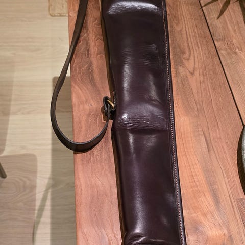 Geværfoderal i brun “læder” sælges.