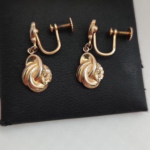 Guld double antik øreskruer med perle