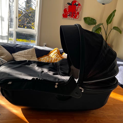 Vi har været rigtig glade for denne sidevogn til barnevognen. Vi har ikke brugt selerne, hvorfor vi ikke har dem længere, da børnene sad fint uden, da de var lidt større. Der medfølger en ringeklokke, som de har haft glæde af.