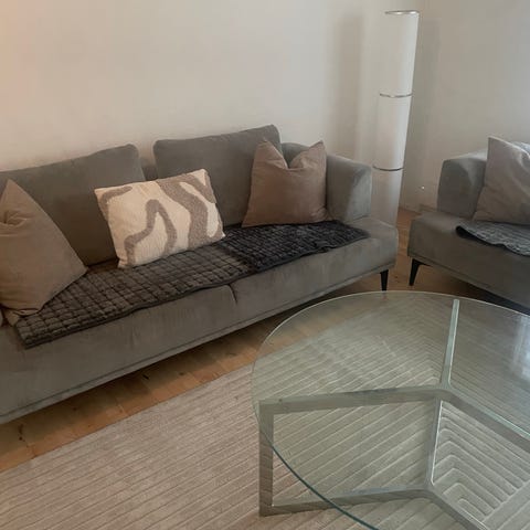 Sofaerne er komfortable, stabile og fremstår pæne uden pletter, huller eller lugt.