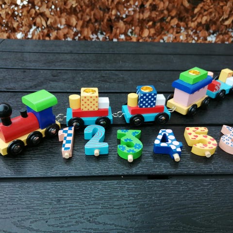 Fødselsdagstog med tal og flag fra Coop (str. 14 cm)