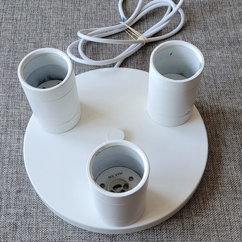 Loftslampe / skinne med spots. Som ny. Pærer medfølger, tre virker, den fjerde skal udskiftes. Afhentes på Frederiksberg :-)