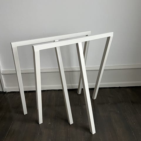 Har været brugt som skrivebord og hælder derfor lidt nedad på midten… overfladen dog fin…kan måske stadig bruges som hobby bord…