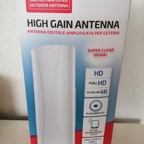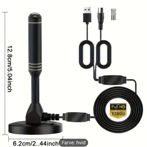 Dette er en loop-antenne, designet til at modtage radio- eller fjernsynssignaler. Antennen består af en firkantet ramme og en lang ledning med en konnektor i enden. Den er lavet af plast og er kompakt med dimensionerne 13x11 cm. Den bruges typisk som en indendørs antenne til at forbedre signalmodtagelsen i hjemmet.