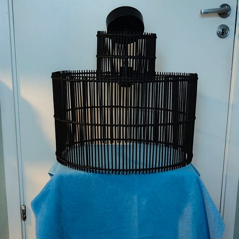 Denne pendel er lavet af bambus, formet som en pære, og har en ledning med en stikkontakt til ophæng. Lampen er designet med et åbent gittermønster, der giver et dekorativt og naturligt udseende. Ideel til brug i stue, spisestue eller køkken som en stilfuld lyskilde. Tags: pendel, bambus, belysning