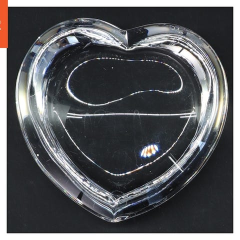 Dette er en smukt designet skål formet som et hjerte, lavet af klart glas. Den har en diameter på 14 cm og kan bruges til dekoration eller til at holde små genstande som smykker. Den glatte glasoverflade giver den en elegant finish.