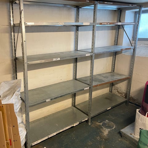 Reol i metal med 5 hylder. Hylderne er i plademateriale og bæres af en metalramme med hulprofiler, som gør det muligt at justere hyldernes placering. Velegnet til opbevaring i fx værksted, garage eller lager. Farve på stellet er mørk, hylderne er lyse træfarvede.