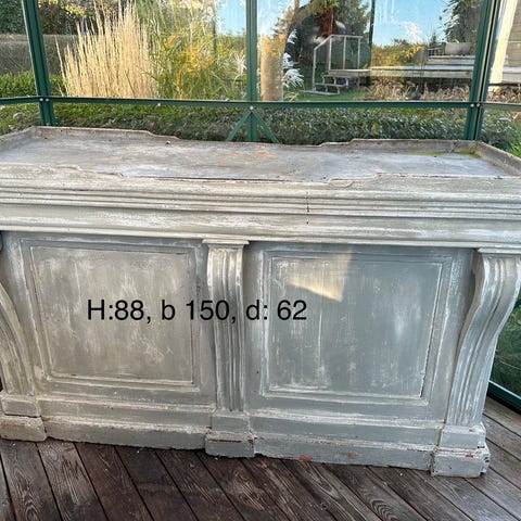 Gammelt svensk sidebord oprindeligt designet for IKEA i starten af 90'erne. En smal og lang desk, også kendt som et vægbord i hvidbelagt solidt træ med forbundet benstilling og afstillingshylle. Ideel til køkken, entre eller badeværelse.