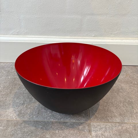 Normann Copenhagen krenit skål med turkis inderside og sort yderside. Ø25 cm. Der er nogle små ridser i bunden, som vist på billederne. Derudover almindelige brugsspor. Prisen er sat derefter.