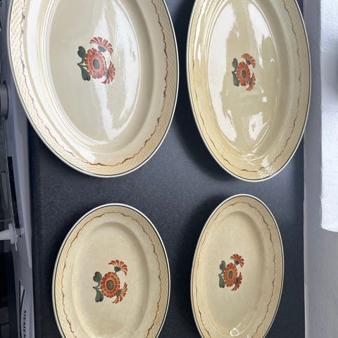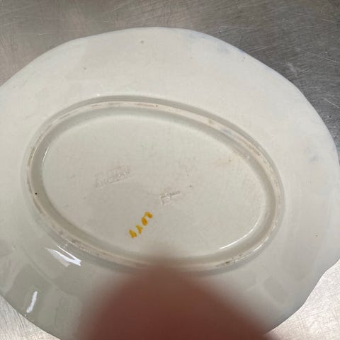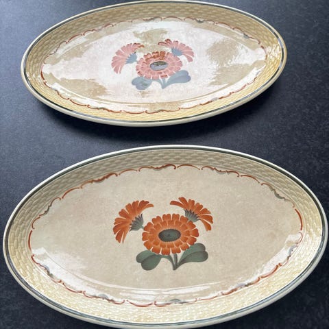 Morgenfrue sovseskål med underfad og blomstret kant