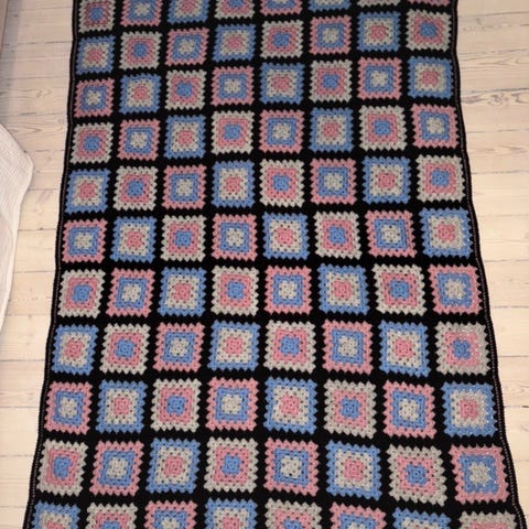 Tæppe , hæklet, oldemortæppe , ternet tæppe, flerfarvet hæklet tæppe, svensk hæklet tæppe, plaid , hæklet plaid, ternet plaid