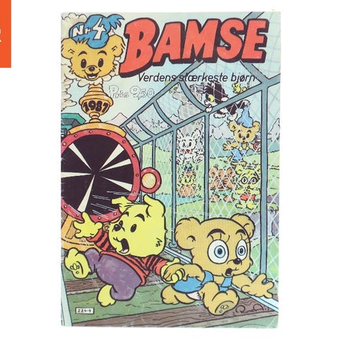 Dette er en tegneserie med titlen 'Bamse', fra 1988, nummer 1 i rækken. Forsiden viser den kendte bjørn Bamse og hans venner. Bagsiden indeholder en konkurrence, hvor man kan vinde Bamse-håndklæder. Teksten på bagsiden er rettet mod børn og har en kupon til deltagelse i konkurrencen.