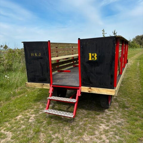 Solid jagtvogn/transportvogn med lys, hundekasse og vildthæk. Såvel hundekasse som vildthæk er let aftagelige således vognen kan anvendes til andre formål som f.eks. fodring. Vognens mål er tilpasset palle-mål således der kan læsses paller fra sider og bag. Jagtvognen er monteret med tvillinghjul, hvilket kommer til sin ret i de våde årstider. Særdeles solid chassisramme som holder til stort set hvad som helst. Med en simpel forordning kan vognen også kobles på et almindelig anhængertræk. Fralægger plads under bænke og oven på hundekassen til f.eks. geværer, madpakker m.v. Vognen har stået indendørs. En rigtig alsidig jagtvogn til flere formål, som bør ses.