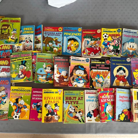 Walt Disney Anders And jumbo-bøger og andre Anders And tegneserier i et blandet lot. Serien indeholder flere forskellige Jumbo-bøger med Anders And, Onkel Joakim og andre figurer fra Andeby samt enkelte Anders And & Co blade. Bøgerne er i dansk sprog og har farverige paperback-omslag.