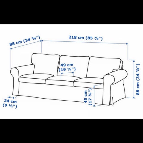 2 personers Backsälen sofa fra IKEA, som kun er halvandet år gammel og kommer fra et dyre- og røgfrit hjem. Modellen er udgået, men det er muligt at købe betræk i forskellige farver. Betrækket kan ligeledes tages af og vaskes.