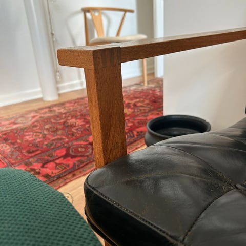 Der er en del brugsspor, blandt andet en sort plet på venstre stol, fremstår stadig flot i en af de sjældne farver.
