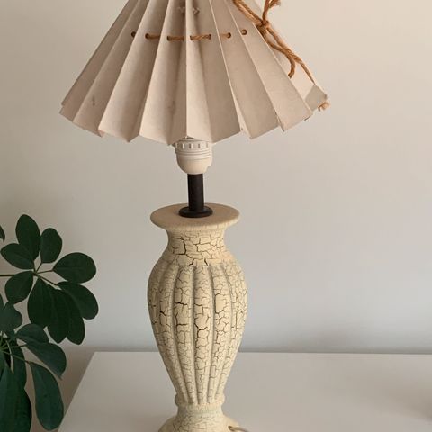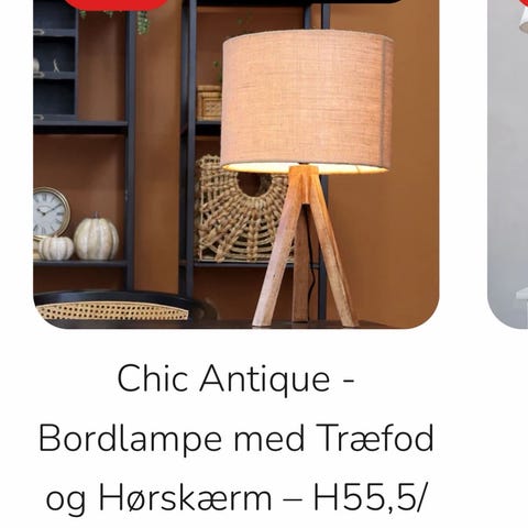 Bordlampe fra Unique Interieur Copenhagen. Rustik. Virker uden problemer. Pære medfølger. Sort ledning og kontakt på ledningen. Skærmen kan løftes af.