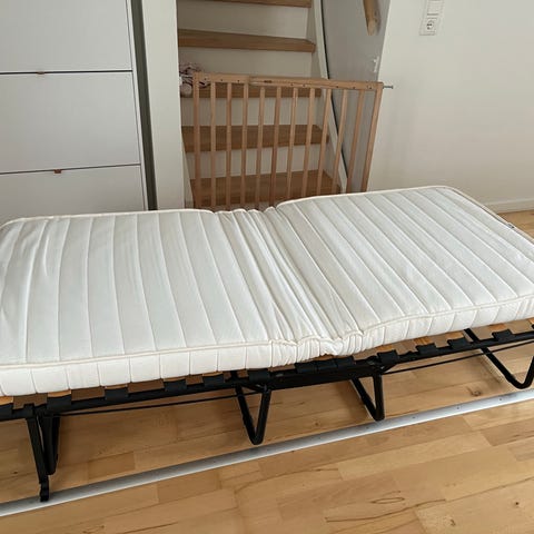 Kommer med madras og beskyttelsesovertræk som vist på billederne. Velegnet som ekstra soveplads i gæsteværelse eller stue.