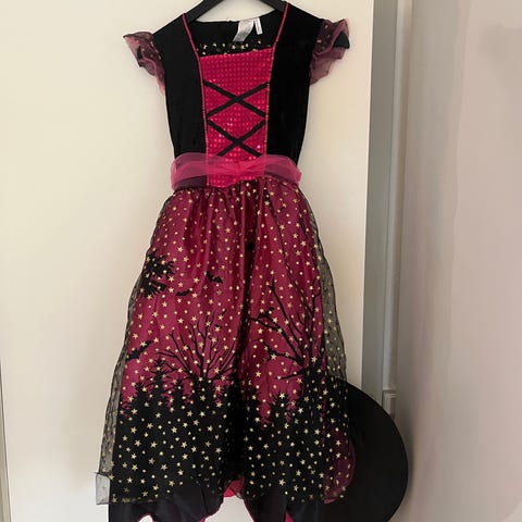 Fin hekse udklædning str. 128. Der er et lille hul i hatten men den kan stadig bruges