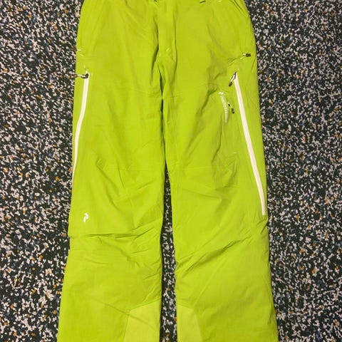 Peak Performance Hipe skibukser til herre i størrelse M. Bukserne er sorte og fremstillet i materiale som er robust og åndbart. Modellen har trykknapper som pynt i siderne af benene, bæltestropper i taljen samt lommer bagpå. Velegnet som yderlag til ski og anden udendørs brug i vådt og koldt vejr.