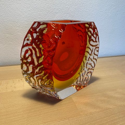 Fin Murano vase. Højde 22,5 cm. Bredde 5,5x5,5 cm. Bittesmå afslag i bunden -se billeder