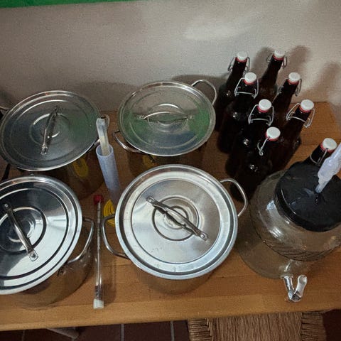 Sælger alt til ølbrygning af 25 L, kogekar, gærspand samt øl kit til en Lager som du kan få med i købet gratis.