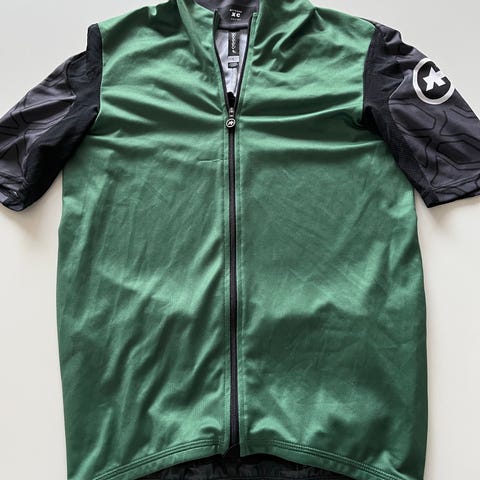 Assos kortærmet cykeltrøje i hvid med sorte detaljer. Trøjen har gennemgående lynlås foran og elastisk kant forneden. Bagsiden er udstyret med sorte paneler og lommer til opbevaring af småting under cykelturen. Fremstillet i let, åndbart materiale egnet til landevejscykling og træning i varmere vejr. Pris er for begge 2
