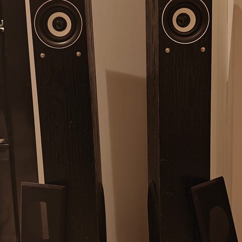 Disse højtalere kan virkelig brage igennem og til en virkelig skarp pris. Nyprisen for sættet er 2300 kr. Købt for 3 år siden hos Thomann. De er stadig i rigtig fin stand.