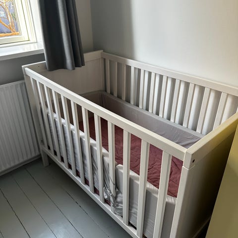 Der kan følge madras fra Jysk med, som kun er (forsøgt) brugt en enkelt gang, men vores barnebarn har aldrig villet sove i den