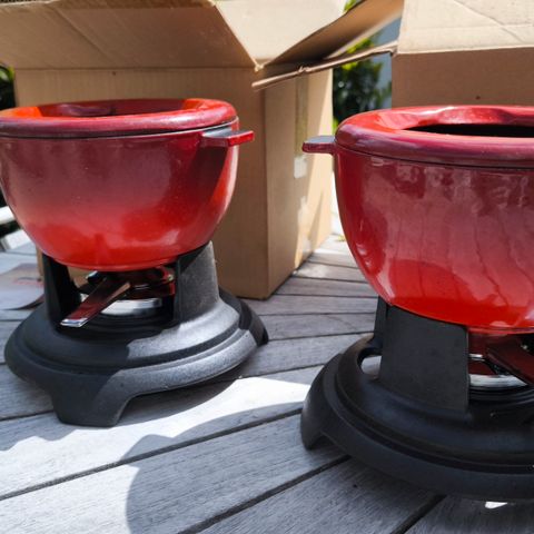 Et fonduesæt støbejern fra Cook&Baker. Det er brugt 1 gang. Selve kassen er slidt af at stå. Men fonduesæt er pænt og rent.