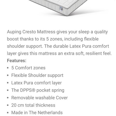 To fine AUPING madrasser i super god kvalitet, model Cresto, sælges samlet for kr. 3.600,-.