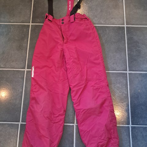 Bukserne har justerbare stropper/seler og elastiske benafslutninger med reflekser for øget synlighed. Farven er lyserød.