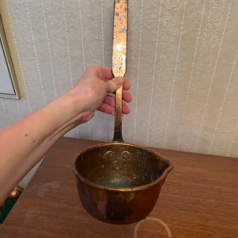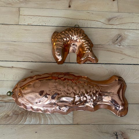 Vintage oval fiske eller stege gryde i kobber