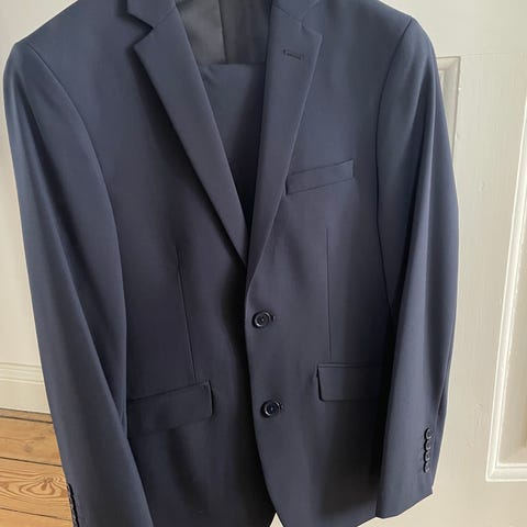 Konfirmationssæt i farven Dark navy str. 164. Købt i 2025 og brugt en dag. Sælges samlet jakke, bukser og skjorte. Jakke og bukser er købt i Jack & Jones, skjorte fra Nielsens. Kvitteringer haves. Fra røg og dyrefrit hjem.