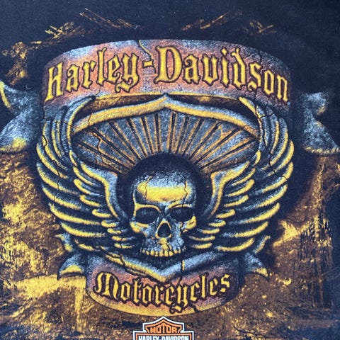Vintage Harley-Davidson T-shirt i størrelse M. med rund hals og korte ærmer. Den er i god stand og sort, ikke grålig som på billederne, og printet er skarpt.