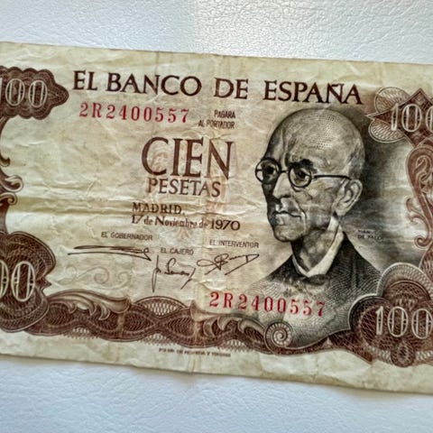 2 stk 1000 pesetas pengesedler sælges samlet for 25 kr.