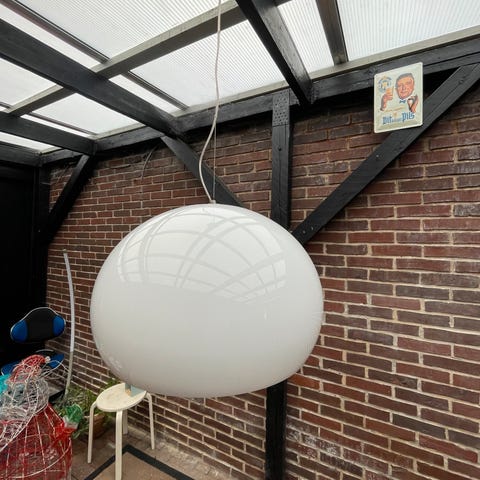Kartell FL/Y pendel designet af Ferruccio Laviani. Lampen er udført i transparent grøn plast og har en halvkugleformet skærm. Velegnet som belysning over spisebord, køkkenbord eller i opholdsrum. Leveres med ophæng og ledning, fatning til standard pære (se specifikationer fra producent for kompatible lyskilder).