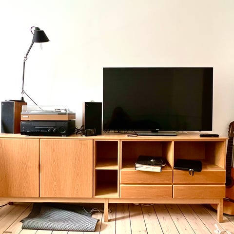1.stk. flot og solide Klim-skænke i klassisk design. Sæbelakeret bøg med lyst, naturligt udtryk. Købt hos Den Gamle Købmandsgård.