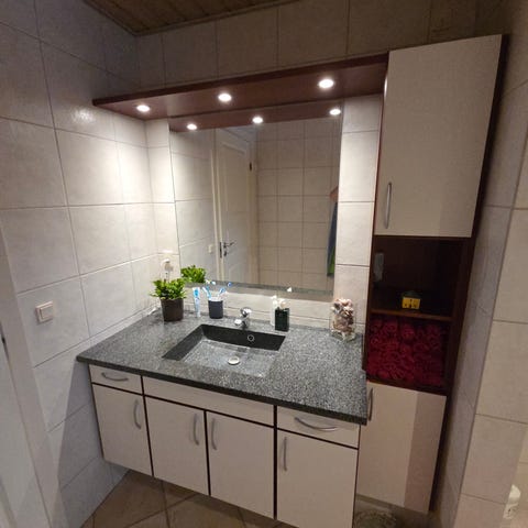 Badeværelses møbler med stålvask og vandhane