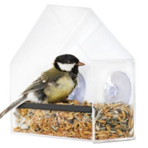 Fuglefoder huset er udstyret med rødt tagpap og et indbygget net, der forhindrer større fugle som skader og duer i at få adgang til foderet, så det primært er de små havefugle, der kan spise.