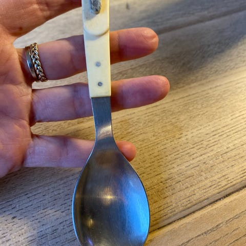 Serveringsske sølvfarvet metal ca. 38 cm