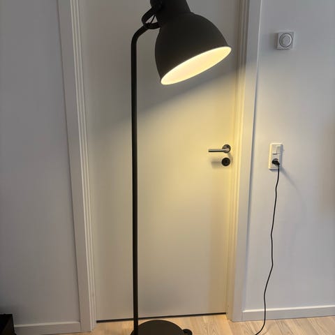 Sort gulvlampe med 3 spot, som kan justeres individuelt i højden.
