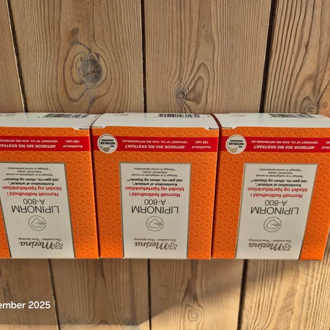 4 uåbnet pakker og 1 hvor der er taget 2 tabletter fra sælges, da jeg ikke kan tåle dem. Nypris pr stk 100 kr.