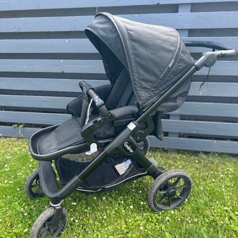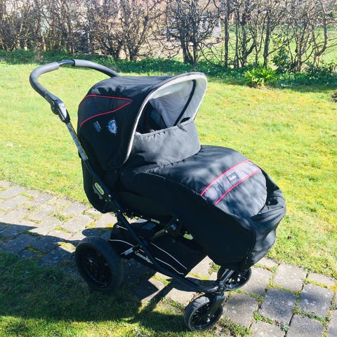 Stor kaleche der kan gøres endnu længere hvis barnet skal ligge ned og sove.